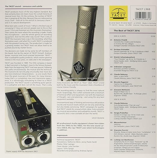 This record creates new possibilities of inspecting and adjusting record players. Overdubs and mixing at europasonor. Vinyl records are known for their clear sound quality as compared to mp3s or cds. Since tacet re entered the vinyl business back in 1999 barely 10 years after the supposed demise of the lp they have ranked among the leading classical labels who continually delight their audiences with sparkling new recordings in this medium claimed by many to be unsuitable for classical music.